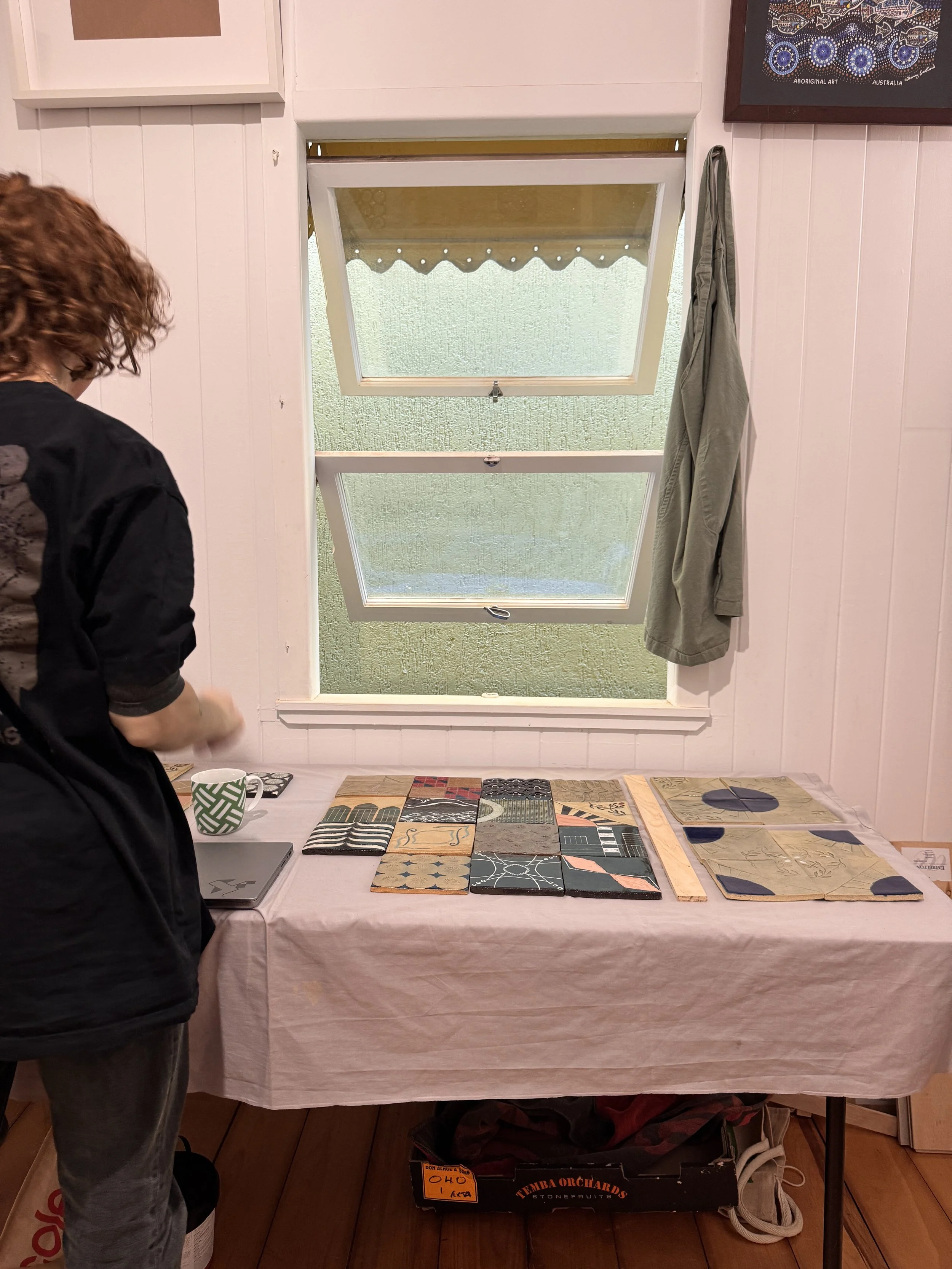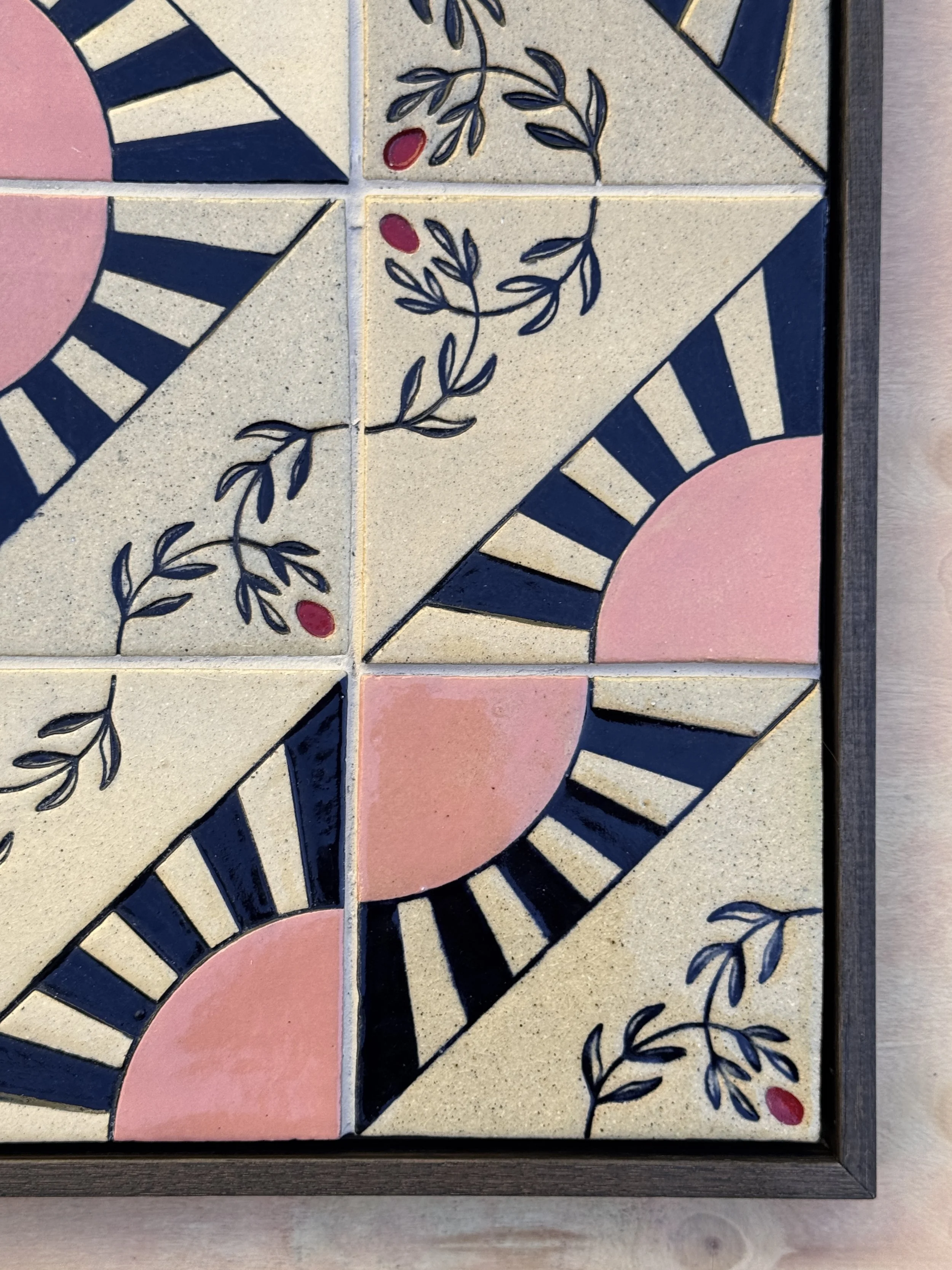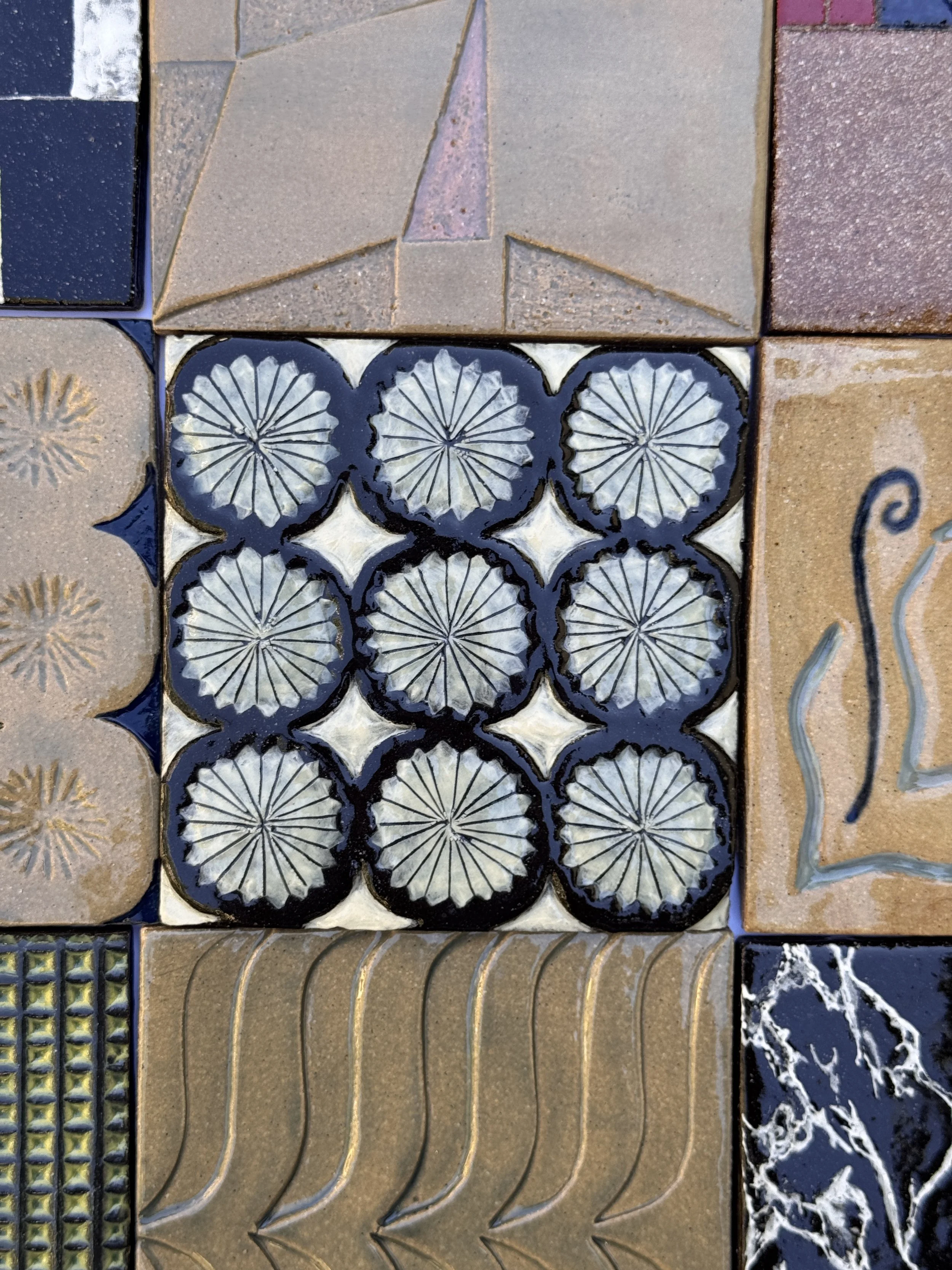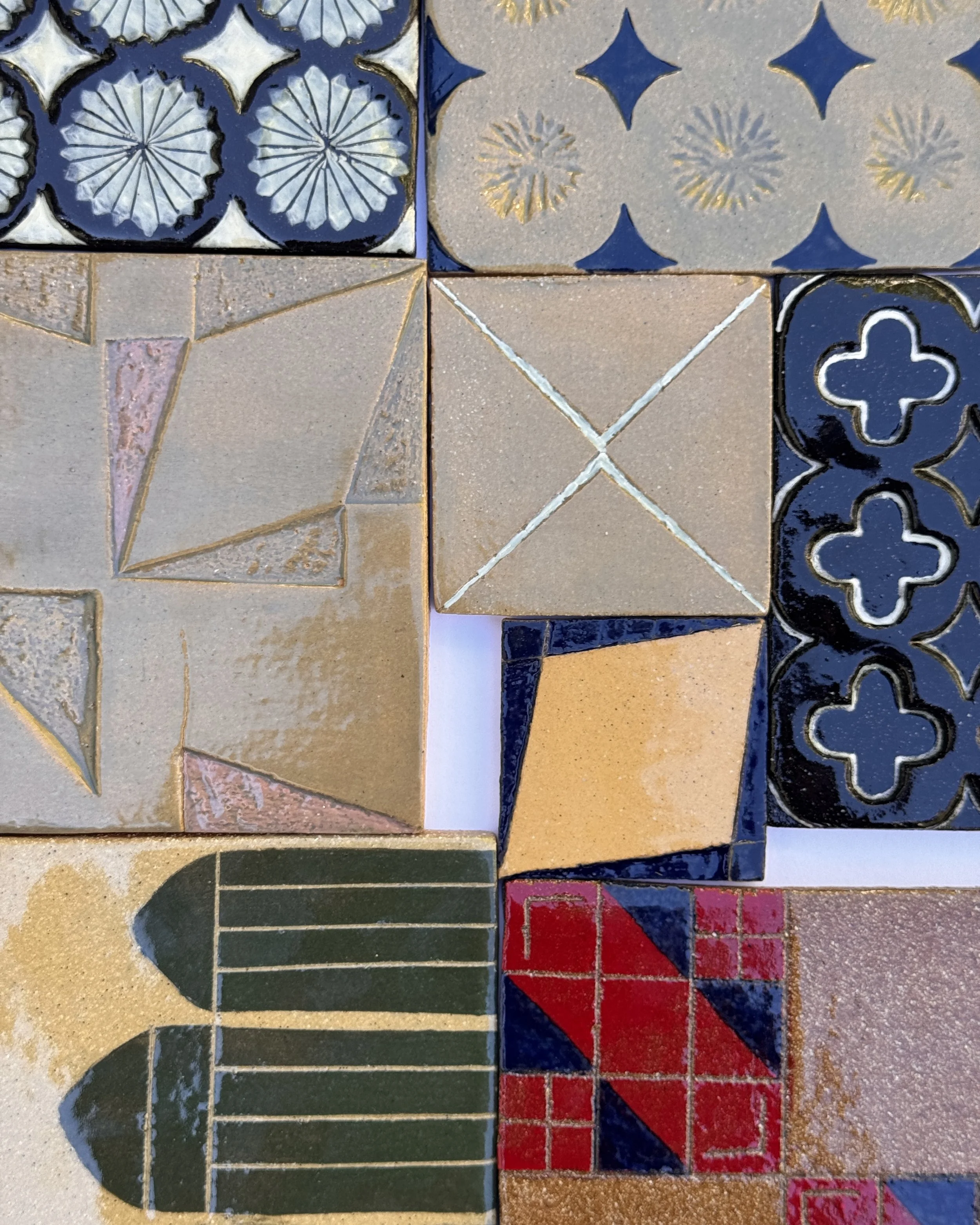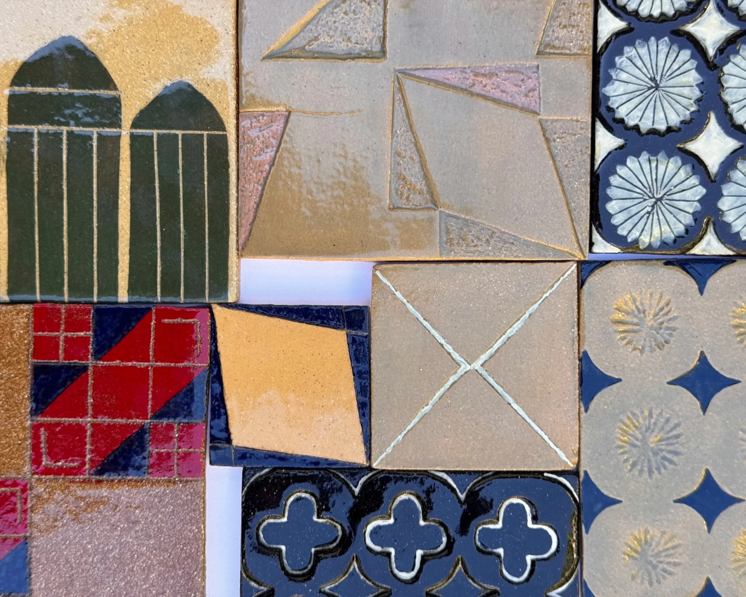 Inspired by the landscapes of ancestral homes, along with architectural forms, textures, and patterns, the works reflect an experimental ceramic tile-making process. Drawing from our shared Mediterranean heritage, Tile Topographies took inspiration from sunny coastlines, olive groves, and mountain ranges, translating these natural forms into tactile, hand-built surfaces.